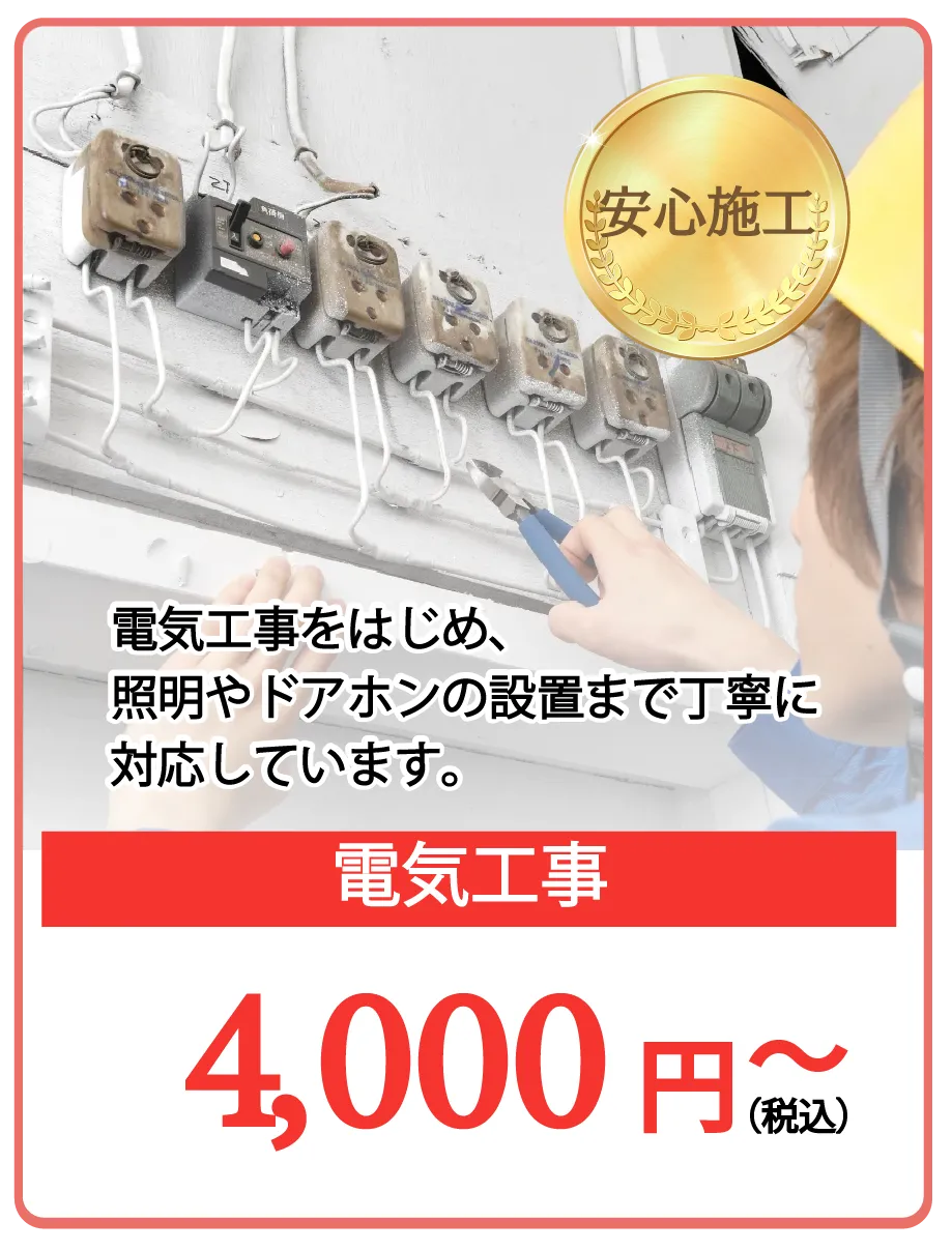 「照明が点かない」「電気が使えない」「テレビが映らない」など、突然の電気トラブルもお任せください。
