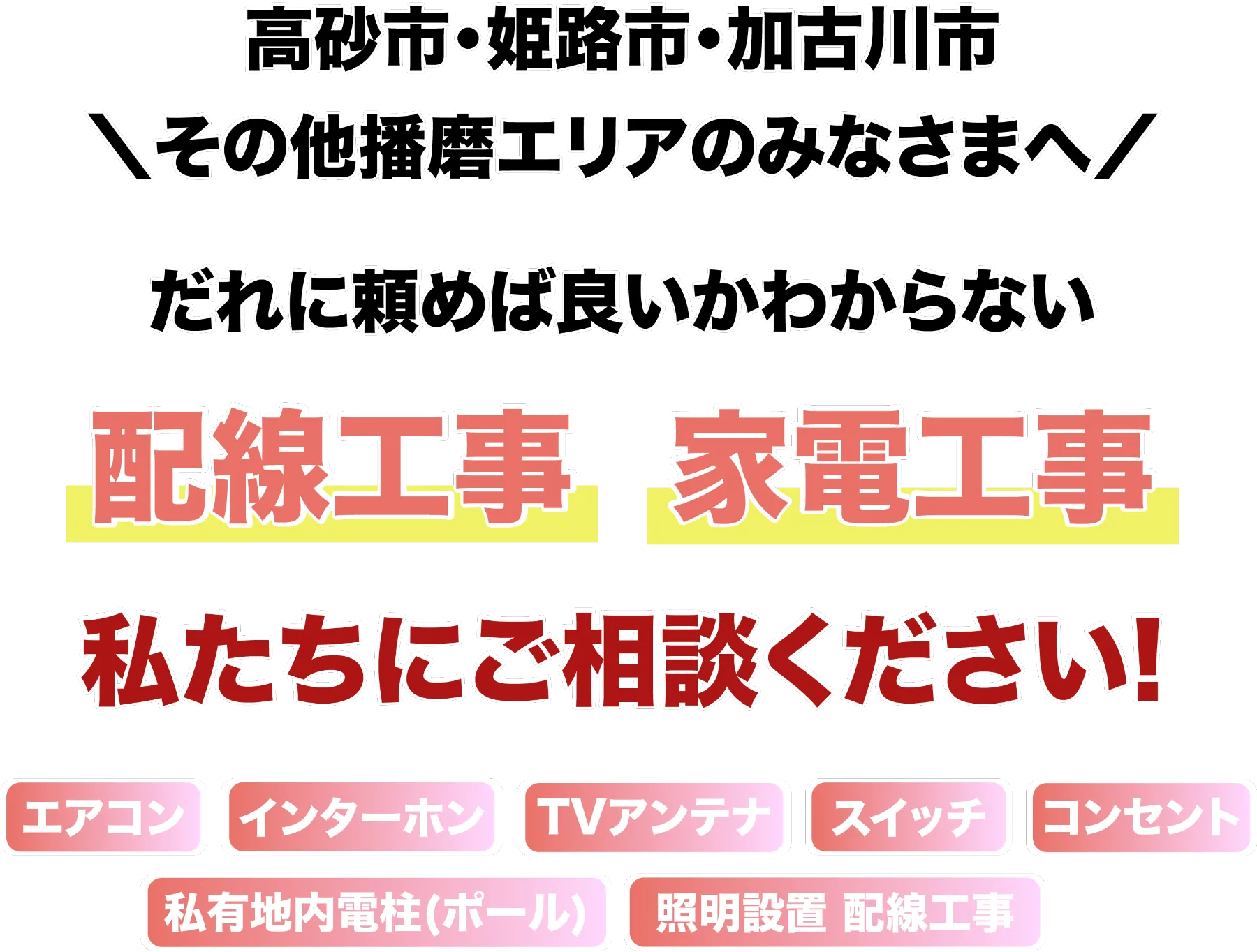 ご相談、お見積り、現地調査まで無料となりますので、電気のお困り事がございましたらお気軽にご相談ください。